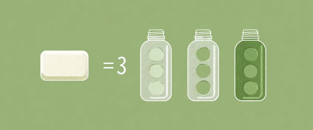 CO₂: Durch das geringere Gewicht und Volumen verursacht der Transport deutlich weniger CO₂-Emissionen. Studien zeigen Einsparungen von bis zu 60% im Vergleich zu Duschgel.